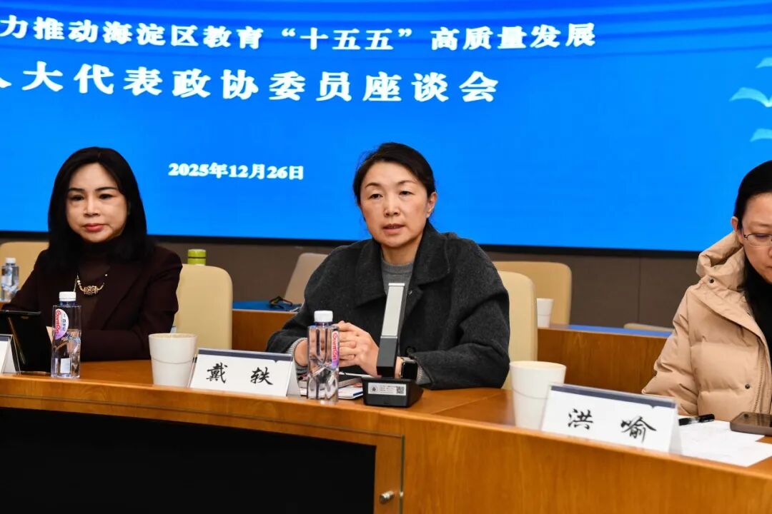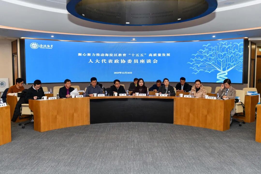 受邀的人大代表、政协委员在座谈中肯定了海淀教育2025年工作成绩,并就拔尖人才培养、学生身心健康、人工智能赋能教育发展、校家社协同育人、教师队伍建设等话题,与教工委、教委班子及相关负责同志进行了深入交流和讨论。