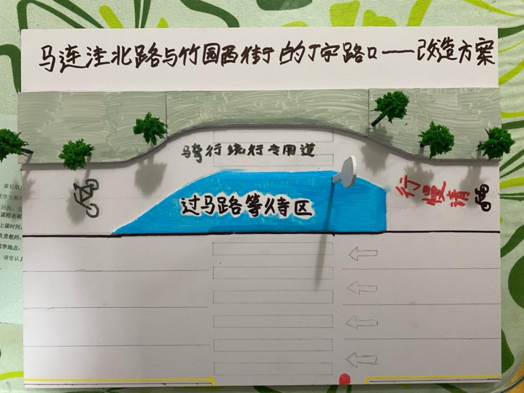 通过路口现场观察访谈、网络问卷调研及搜索相关数据等方式,惠泽宸发现:丁字路口普遍存在交通安全隐患,以及通行效率低的问题。基于调研分析,他提出了一套系统化解决方案: