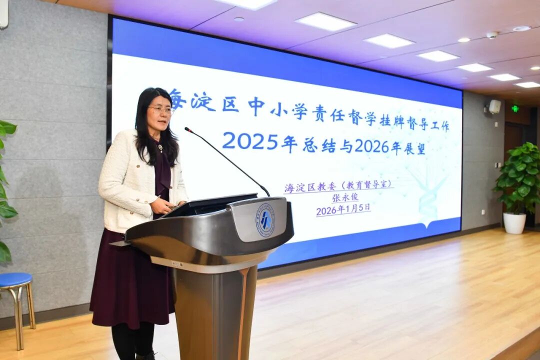 区教委督学科科长张永俊对2025年全区中小学挂牌督导工作进行全面总结,并对2026年工作思路与重点任务进行系统规划部署。张永俊从高位统筹,筑牢督导工作“四梁八柱”;深化融合,拓展督导工作“深度广度”;赋能成长,打造专业督学“硬核队伍”;科技赋能,推动督导模式“数字转型”等四个方面总结经验,梳理工作推进中的突破与亮点。过去一年,海淀督学队伍扎根一线、精准督导,在规范办学行为、提升教育质量、推进教育改革等方面取得显著成效。2026年,海淀区中小学挂牌督导工作将继续以督导实效为目标,围绕国家、市、区教育重点工作,依托学区督导中心,创新和完善督导工作方式方法,加强督学队伍和视导员队伍建设,强化责任意识、问题意识、发展意识,深化结果应用,充分发挥责任督学挂牌督导守安全、保底线、促发展的作用,持续提高督导工作的专业化、实效性、权威性,助推海淀教育高质量发展。