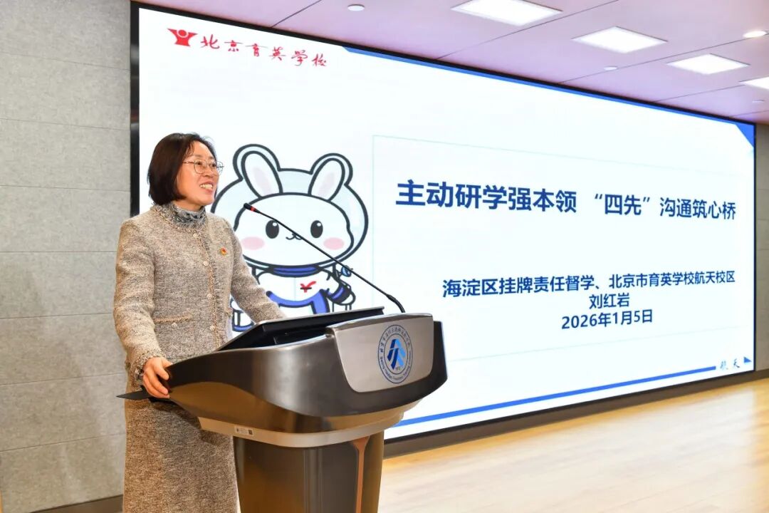 挂牌责任督学、育英学校航天校区副校长刘红岩以《主动研学强本领 “四先”沟通筑心桥》为题,展现了新任督学主动钻研督导方法、用心搭建沟通桥梁的责任担当;