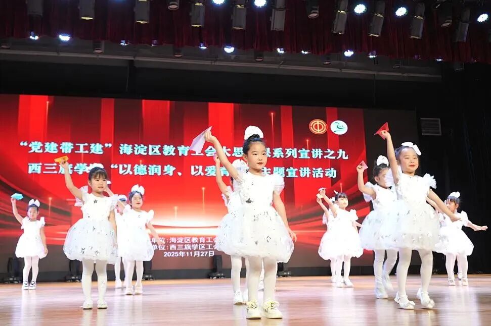 2025年11月27日,中国工人大思政课·海淀教育篇“党建带工建”海淀区教育工会大思政课系列宣讲之九西三旗学区“以德润身、以爱育人”主题宣讲活动,在北京十一学校龙樾实验中学成功举办。