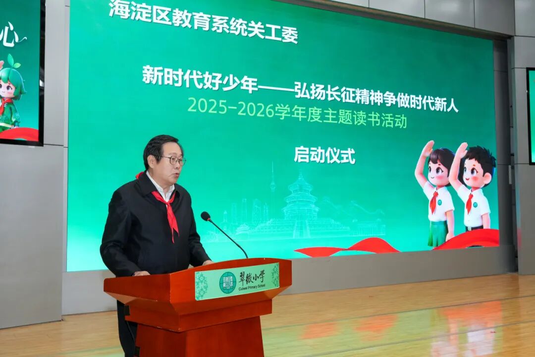 1月9日,海淀区教育关工委“做新时代好少年——纪念红军长征胜利90周年”读书主题活动在海淀区翠微小学正式启动。本次活动紧扣立德树人根本任务,旨在引导青少年在书香中重温长征史诗,传承红色基因,让伟大长征精神在新时代焕发新的光芒。