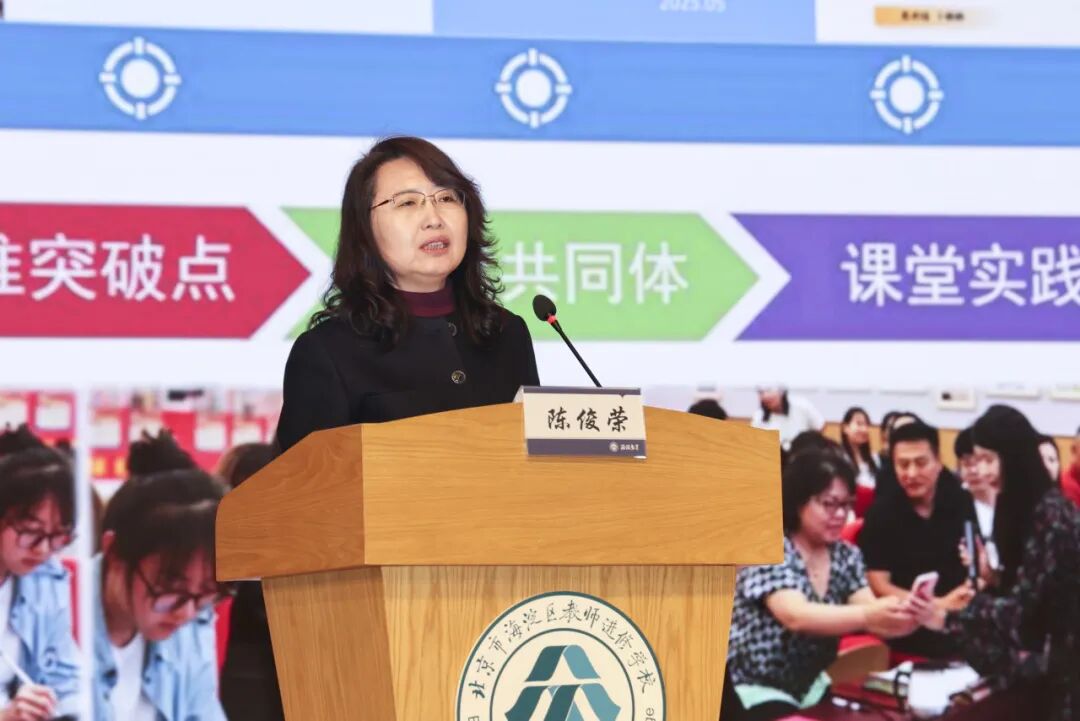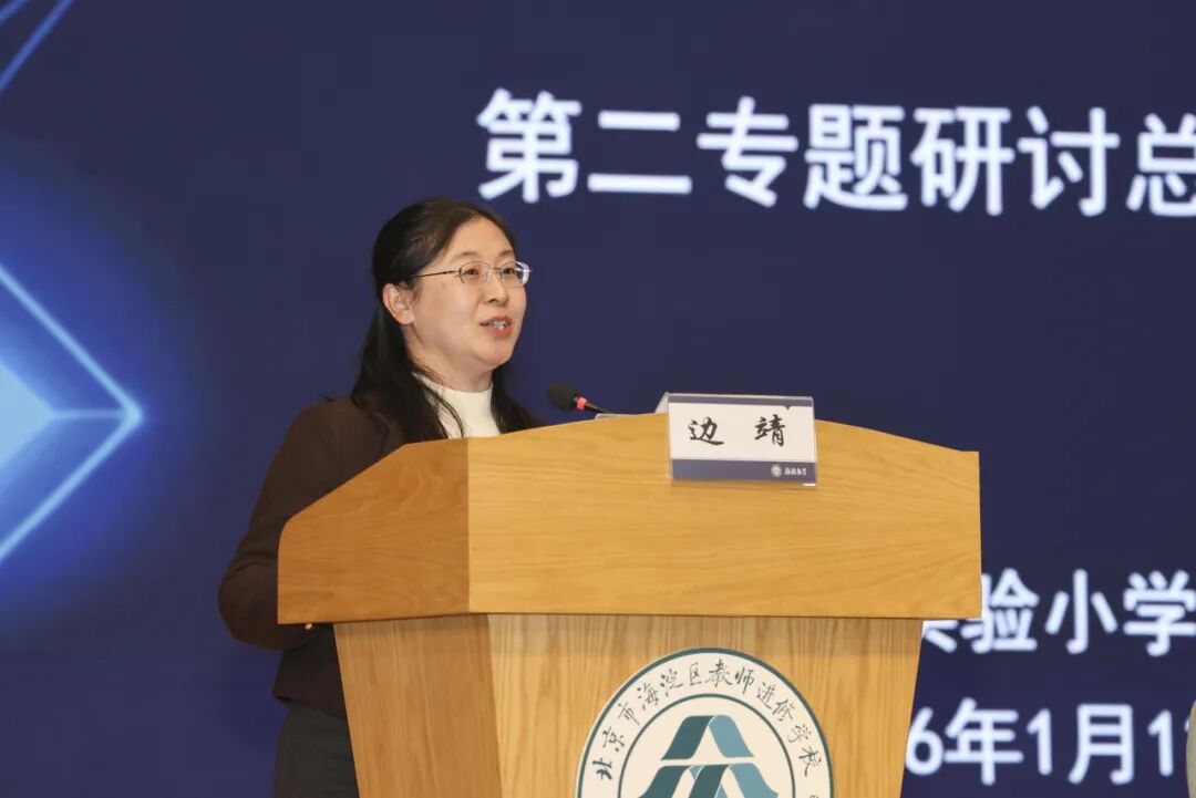 海淀区教师进修学校副校长陈俊荣作题为《促进学生学习的课堂评价设计与实施》的专题报告,从评价促进学生学习的教学设计流程、评价促进学生学习的校本研究建议等方面,为推动教师专业成长与学生全面发展提供有力的教研支撑。