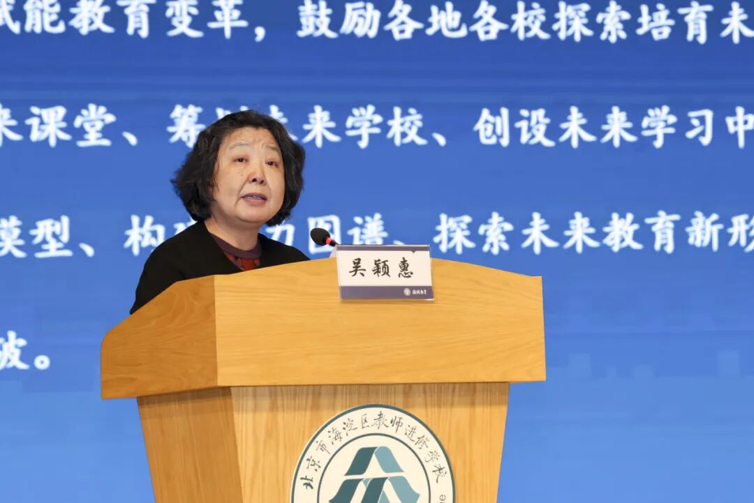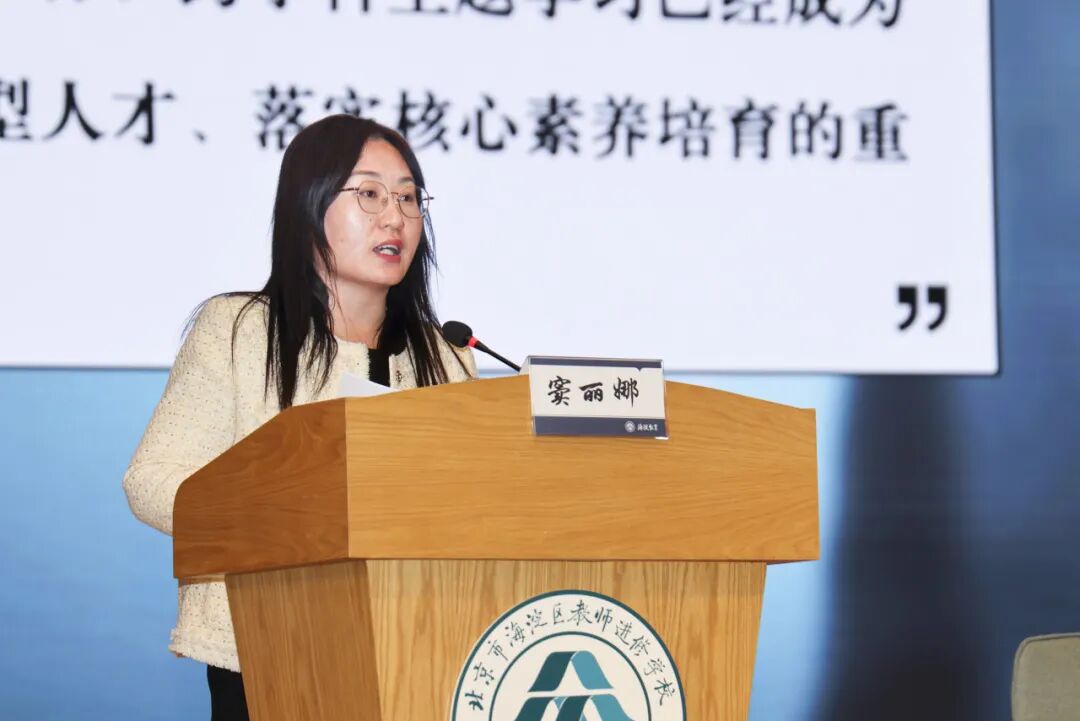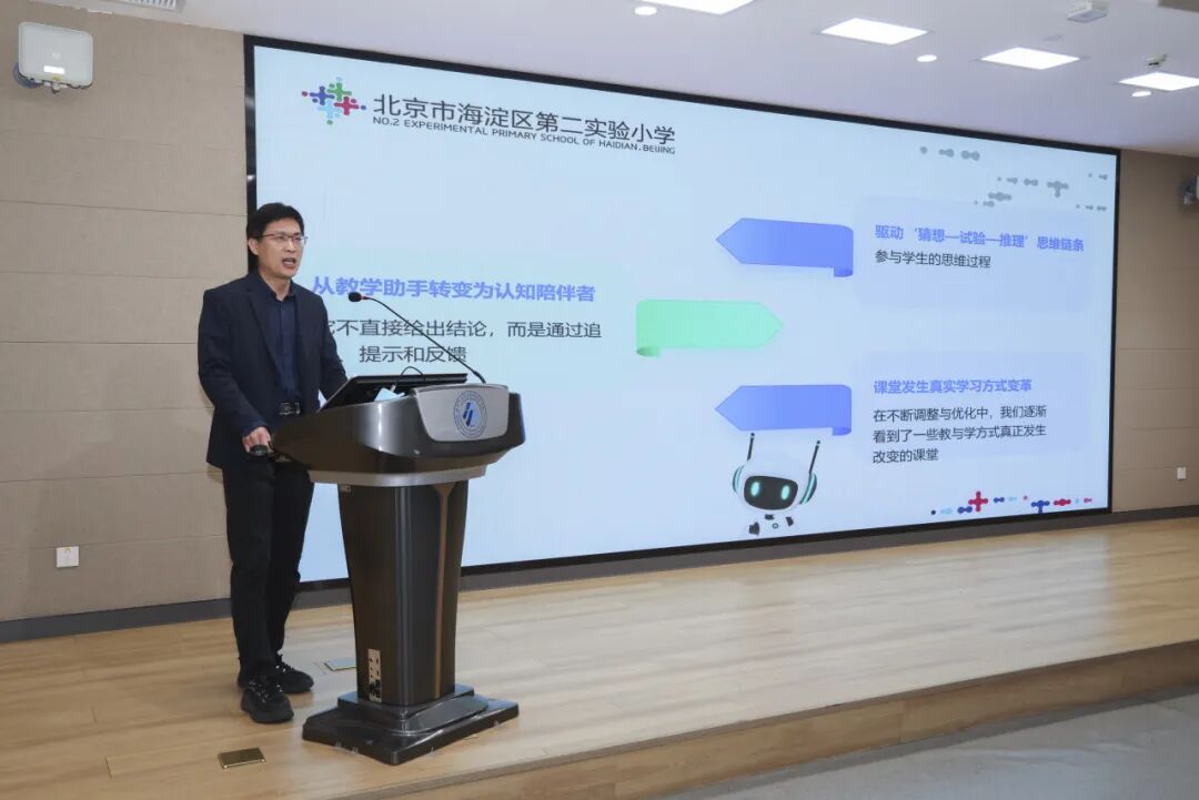 海淀区教育科学研究院院长吴颖惠作题为《“适合·适当·适度·适切”:人工智能赋能小学教学变革》的专题报告,她以真实的AI教学短视频内容,以及人工智能人才培养成果为案例,向大家介绍人工智能赋能教育教学的重要性。她希望全体教师要以学生发展为基本原则,积极探索人工智能应用,创新人机互动教学模式,为学生提供因材施教的个性化学习资源,培养出一批能够驾驭AI的优秀海淀学生。
