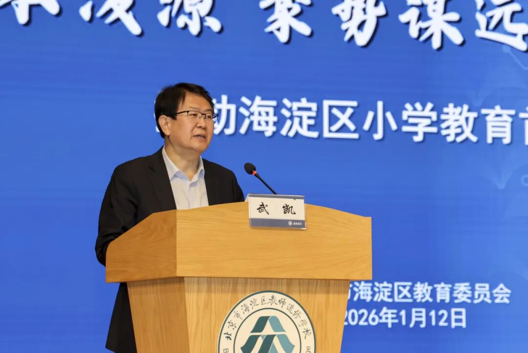 2026年是“十五五”规划开局之年。新的一年,海淀小学教育要承担新的使命与任务,他希望全体小学教育工作者要主动识变、应变、求变,精准应对生源结构变化带来的新挑战,以更高标准提升办学品质,切实满足人民群众对优质、多元、个性化教育的迫切需求;积极、主动对接海淀经济高质量发展的战略需求,持续扩充优质教育服务供给的广度与深度,充分发挥科技人才资源聚集与政策叠加的赋能效应,以教育之强筑牢现代化强区之基;将人工智能融入教育教学全要素、全过程,创新智能学伴、智能教师等人机协同教育教学新模式,加快实现大规模因材施教,提高教学质量,促进教育公平。