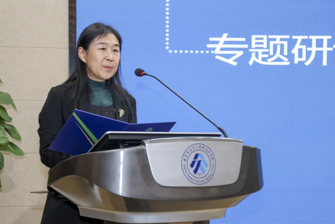 中国教科院教育理论研究所原所长、中华孔子学会副会长兼国学教育专业委员会会长吴安春为参会教师带来专题讲座。她从“教育家精神的标识性概念”“学校特色发展的核心要素”“教科研是教育家精神与学校特色发展深度融合的有效路径”“教科研的最高境界是提炼多样态的教育模式”“教育模式建构的关键步骤”“合作行动研究是教科研的有效组织形成”六个方面,指导学校通过教科研落实教育家精神,并用教育家精神引领各校走特色发展之路。