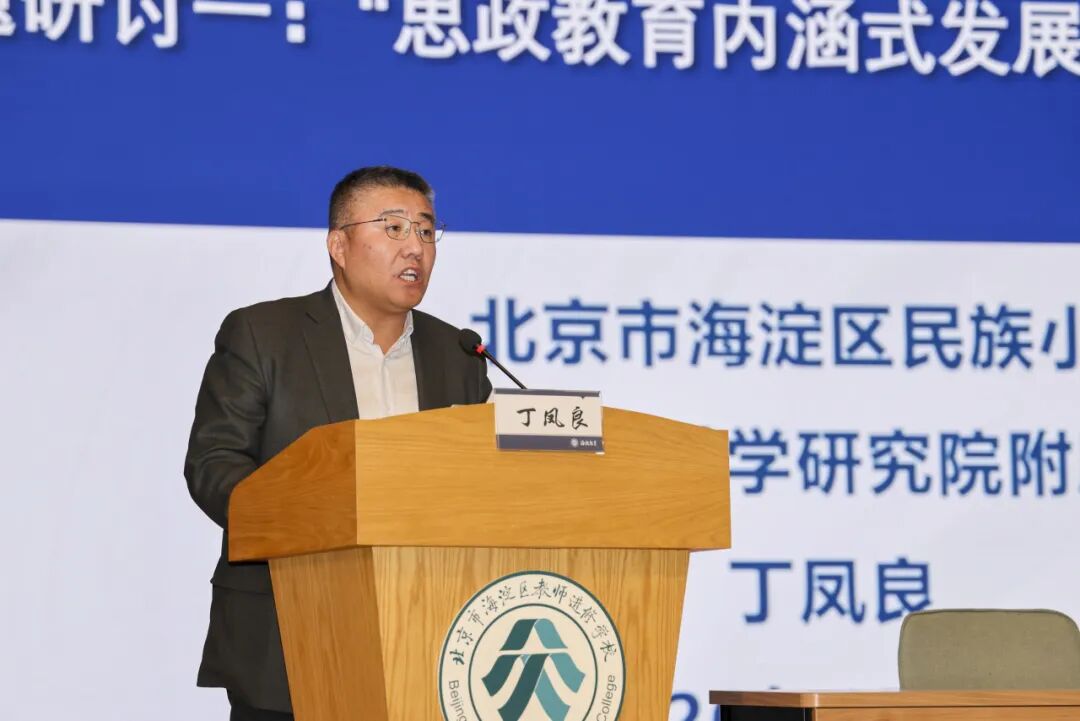 下午的专题研讨会上,16位来自海淀区小学的书记、校长、教学干部,分别就“大思政”“AI+教育”“跨学科教学”“特殊教育”四个方向进行经验分享。