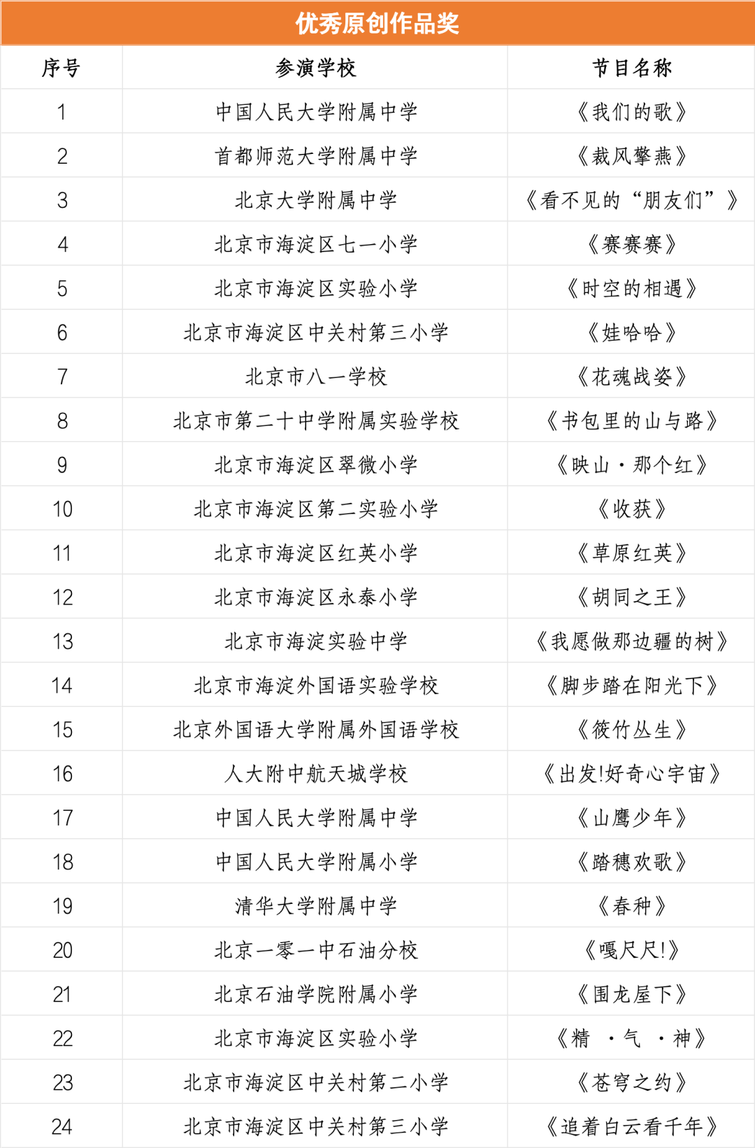 一起来看看获奖名单中海淀都有哪些作品和学校上榜——
