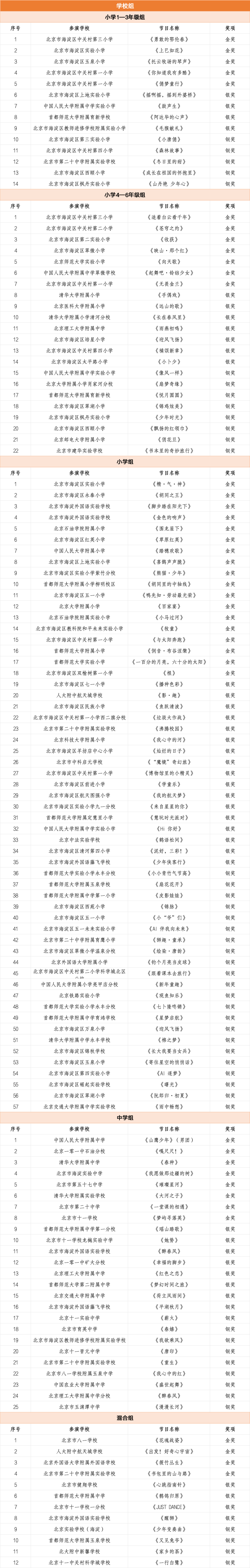 2025年海淀区学生艺术节舞蹈展演获奖名单