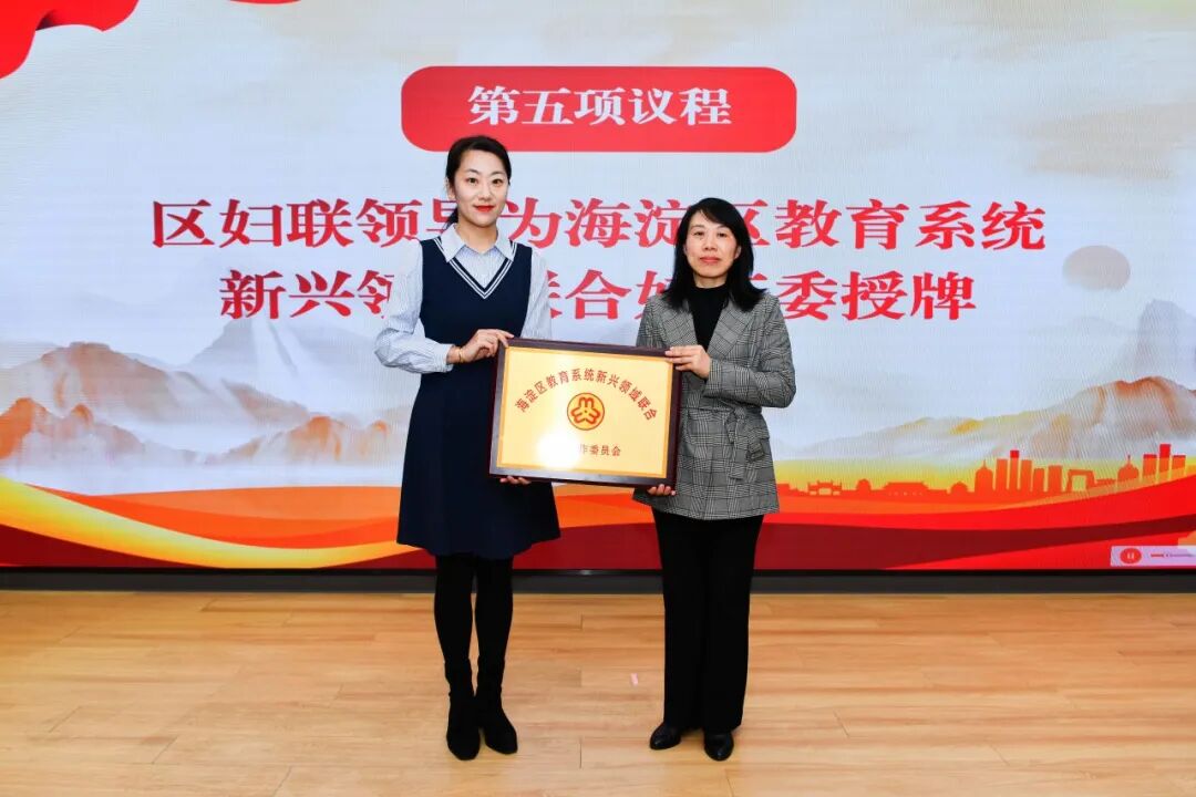 海淀区妇联党组书记、主席柳阑为海淀区教育系统新兴领域联合妇女工作委员会授牌。