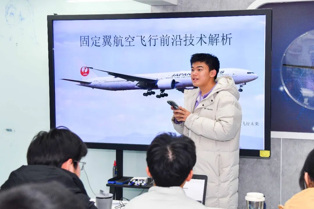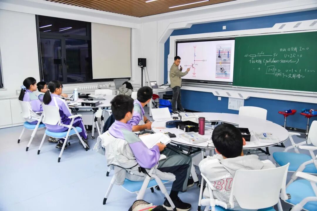 有一群学生,三两结队,陆续走进了主教学楼南侧的一排蓝色建筑——这里是理工附中高研实验室的所在地。在地理科学高研实验室,四层的展柜中陈列着各色矿物岩石,指导教师正在对学生的课题报告进行指导;在隔壁的航空航天高研实验室,一名学生正在进行题为《固定翼航空飞行前沿技术解析》的专题汇报;在化学材料高研实验室,同学们正在以小组为单位,汇报青蒿素的研究发现。机器人、天文、金融、人工智能、芯片……11个高研实验室的课程在校园内同步开展着,这个场景,是理工附中科技教育日常的缩影。在这里,学生的学习边界早已超越了课本,延伸到真实的科学前沿与工程实践之中。