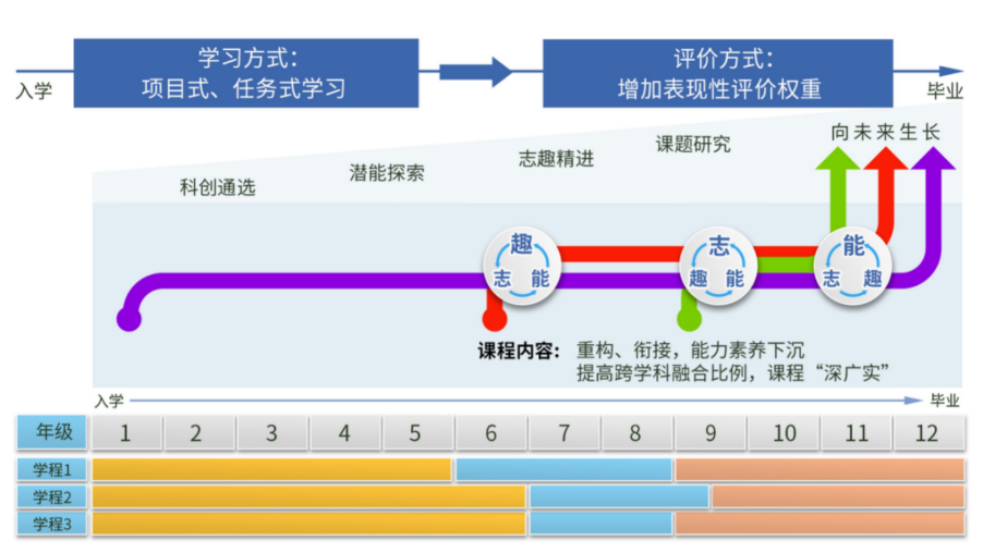 由此,面向全体学生,学校以“学科未来课程+可选择的跨学科融合课程”构建支持个性化成长的课程结构,一是满足面向学生差异化发展需求,开设能够满足个性化成长的学科未来课程,通过拓展性、进阶性与实践性学习任务,促进学生在学科核心素养、研究方法与应用能力上的持续提升;二是建设面向全体开放、学生可选择的跨学科课程体系,以真实问题为驱动组织跨学科项目学习,提供多样化学习路径与成果表达方式,增强学生综合运用知识解决复杂问题的能力。