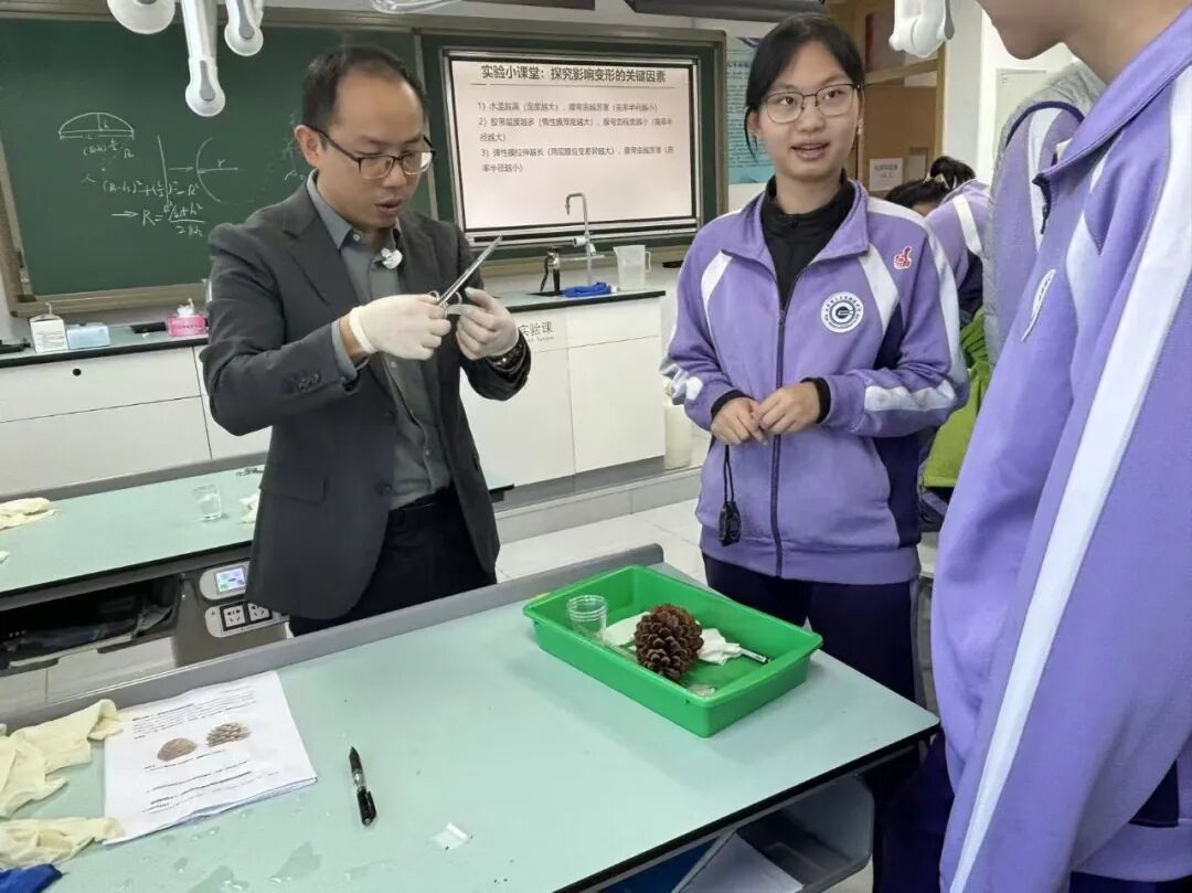 此外,学校与高校、企业共同开发工程课程,将大学的实验设备引入校园,如在与中科院理化所合作开设的“仿生材料课程”中,学生可以开展材料表面性能测试、仿生结构设计等实验;同时,学校还开设了“产业实践课”,定期组织学生走进企业研发中心,了解科技成果如何从实验室走向生产线。这种“沉浸式”的学习体验,让学生的成长接上了地气,也连上了产业和学术的天线。