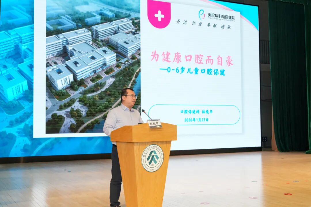 海淀区妇幼保健院口腔科主任林晓华主任医师以《0–6岁儿童口腔保健》为主题,从托育阶段常见问题入手,介绍儿童口腔健康的早期预防与日常管理策略,帮助教师在照护过程中提升健康风险识别与科学干预能力。