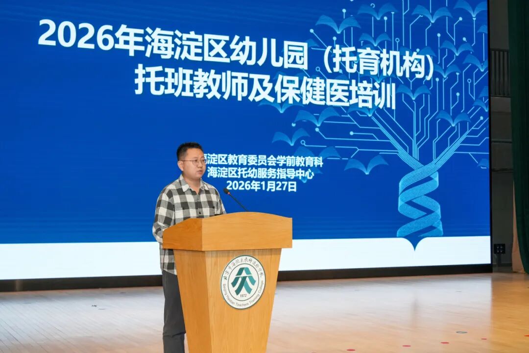 为深入推进区域内托幼一体化发展,全面提升托育从业人员专业能力,结合区级医育融合项目,1月27日-28日,海淀区教委学前科联合区托幼服务指导中心,特邀海淀区妇幼保健院专家团队,面向全区幼儿园 (托育机构) 托班教师及保健医开展培训。海淀区近千名幼儿园及托育机构的托班教师及保健医参加了此次培训。区教委学前科、社管科、进修学校、教科院、托幼服务指导中心,区卫健委及区妇幼保健院,《学前教育》杂志社相关负责人出席本次培训。
