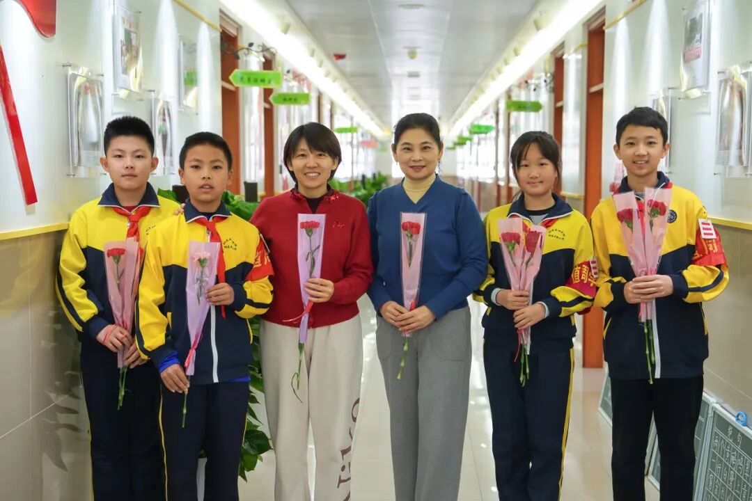 同学们将精心准备的花束送到每位女性教师手中,一声声“老师,节日快乐,您辛苦了”温暖又真挚,饱含着对老师们的尊敬与喜爱。同学们还给校医、食堂、保洁岗位等默默付出的女职工们送上鲜花与祝福。大家用最纯真的方式表达心中的敬意,感谢她们为校园日复一日的辛勤付出和守护。温馨的祝福与感恩之情在校园的每个角落流淌,汇成了一曲动人的节日赞歌。