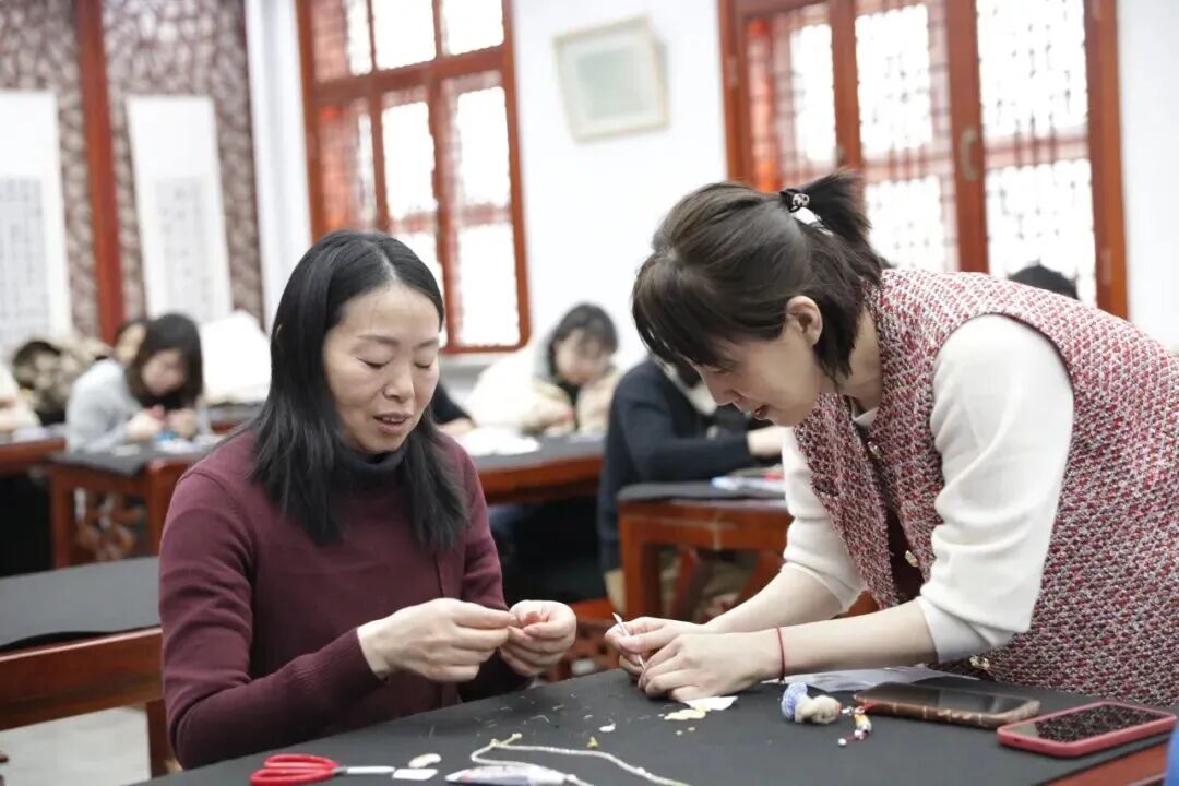 学校举办了“锦绣芳华·非遗宋锦手作体验”活动,依托艺术组前期对宋锦非遗文化的专项教研成果,让在场女教师们沉浸式领略了宋锦非遗的独特魅力。老师们满怀期待地抽取专属宋锦材料包,目光专注地修剪锦布、粘合定型。大家围坐在一起,相互交流,相互切磋制作技巧、分享创意巧思。指尖翻飞间,一块块色泽雅致、纹样精美的宋锦,渐渐化作一件件精致的葫芦挂件、葫芦项链,既生动展现了宋锦独有的古雅之美,又让民族团结的美好心愿融于指尖创作之中。