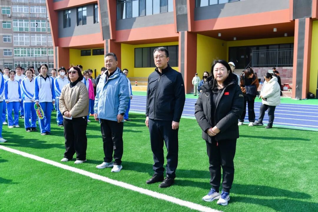 海淀区教委副主任赵霞、曙光街道武装部部长秦世明、八里庄学区管理中心副主任牛跟茂、进修实验学校校长曾辉出席活动,与学校高二年级全体师生共同开启这场科技与体育融合的智慧阳光跑。