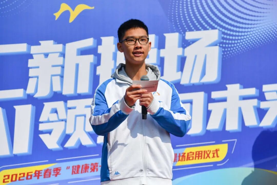 主持人向同学们介绍了本次活动的背景及本学期各项体育赛事的内容,鼓励同学们积极走出教室,参与体育锻炼。随后,高一1班倪康铭、高二2班张墨璁作为学生代表上台领誓。