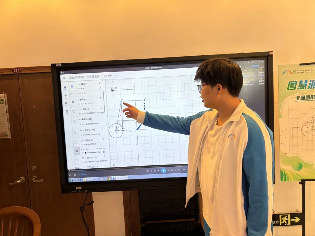 高一6班同学用动态视频,把马克杯中隐藏的“点动成线”的过程拍得像科幻大片;高一3班同学做的几何模型,轻轻一点就能旋转拆分……