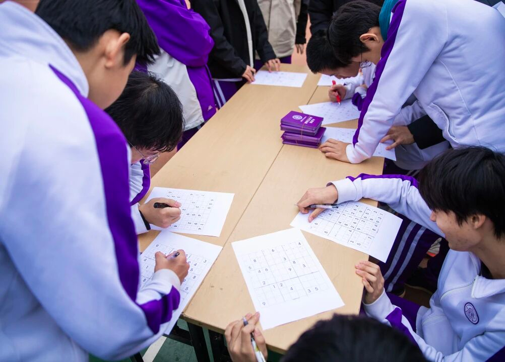 活动现场设置了数字华容道、几何拼图、数独挑战、24点游戏等多个点位,兼顾趣味性与知识性。同学们三五结伴,或凝神思考破解数独谜题,或快速运算挑战24点,或专心记忆冲刺圆周率背诵。在中国地质大学(北京)会场,学生代表们也加入到趣味数理实验、游园闯关等环节中,亲身感受乐在“数”中。