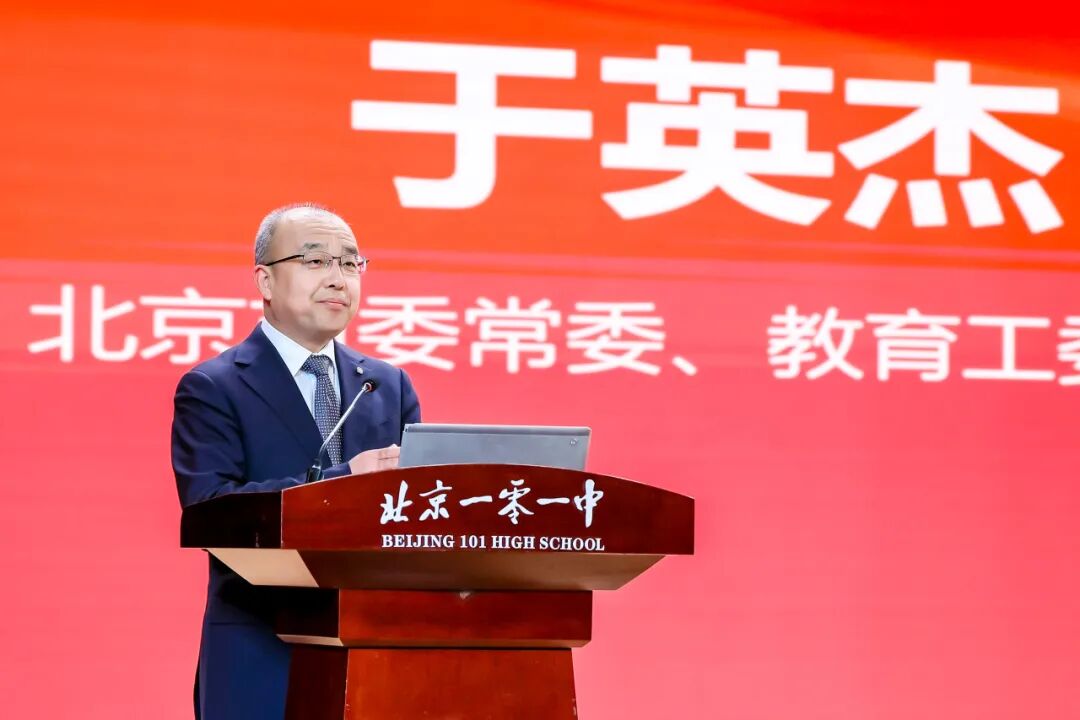 于英杰介绍了北京基础教育在学位供给、教育公平、五育融合等方面的发展成效,传达了习近平总书记对北京教育工作的关怀与指引,并从立德树人、科教赋能、普惠公平三个方面,对首都基础教育发展作出规划部署。