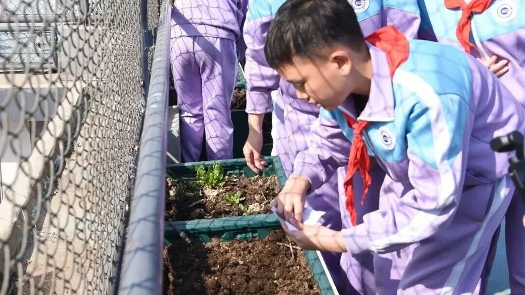 九年级的同学通过花卉种植为校园增添亮色,栽花、培土、设计养护方案,他们用审美眼光规划班级种植角,在草木枯荣间涵养生命美感。