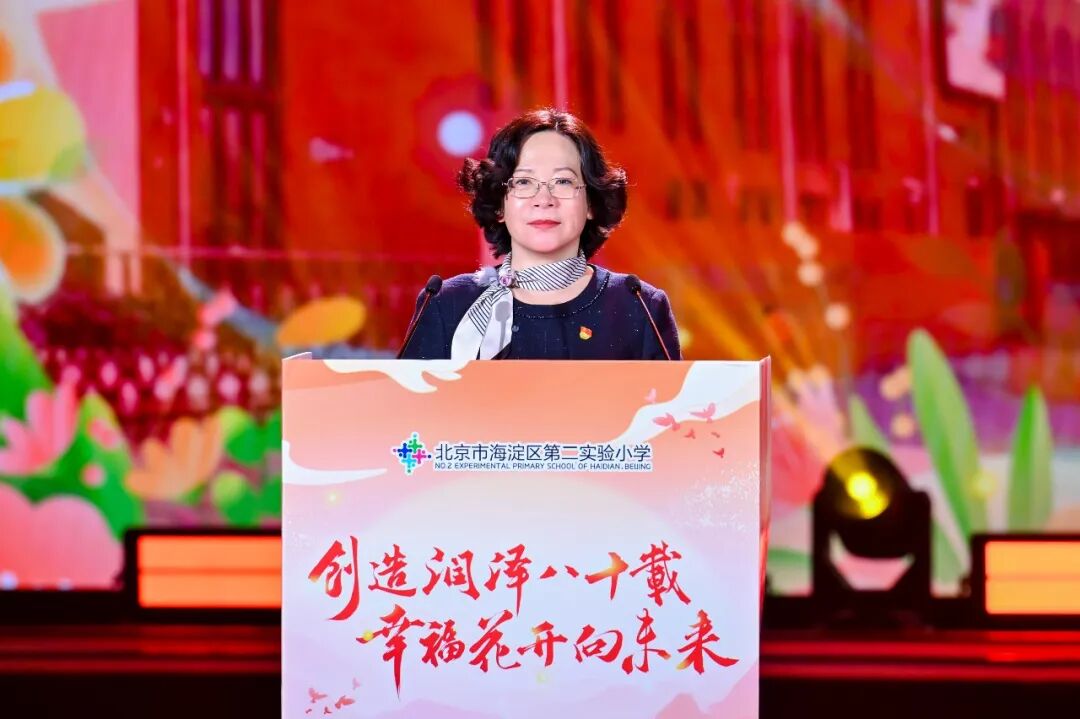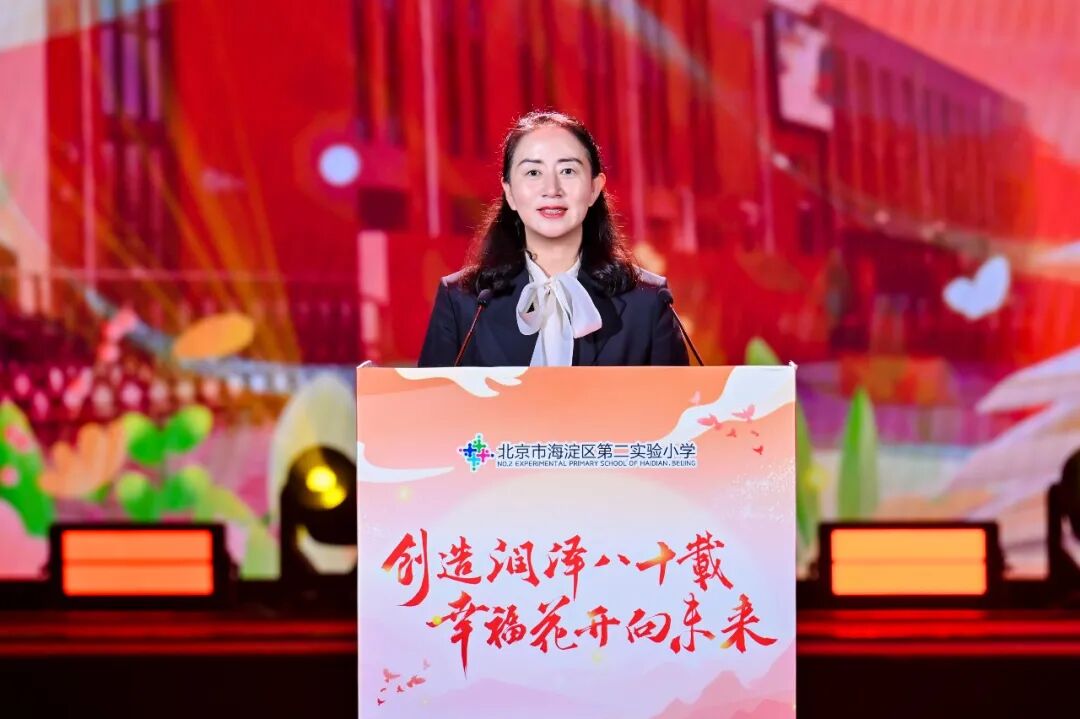 海淀区第二实验小学党委副书记、校长郭红霞在致辞中表示,学校始终在追问一个问题:培养什么样的人?如何培养人?今天舞台上的孩子们,用他们的歌声、舞姿、演奏、表演,给出了最生动的回答。实验二小的教育,就是让每一个孩子都能找到属于自己的舞台,让每一个生命都能闪闪发光。