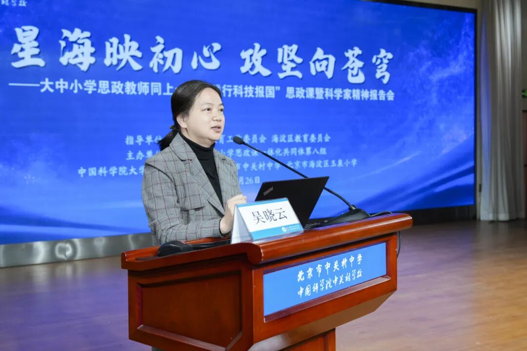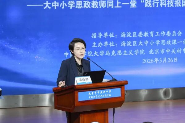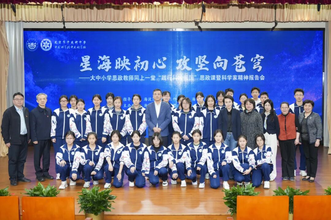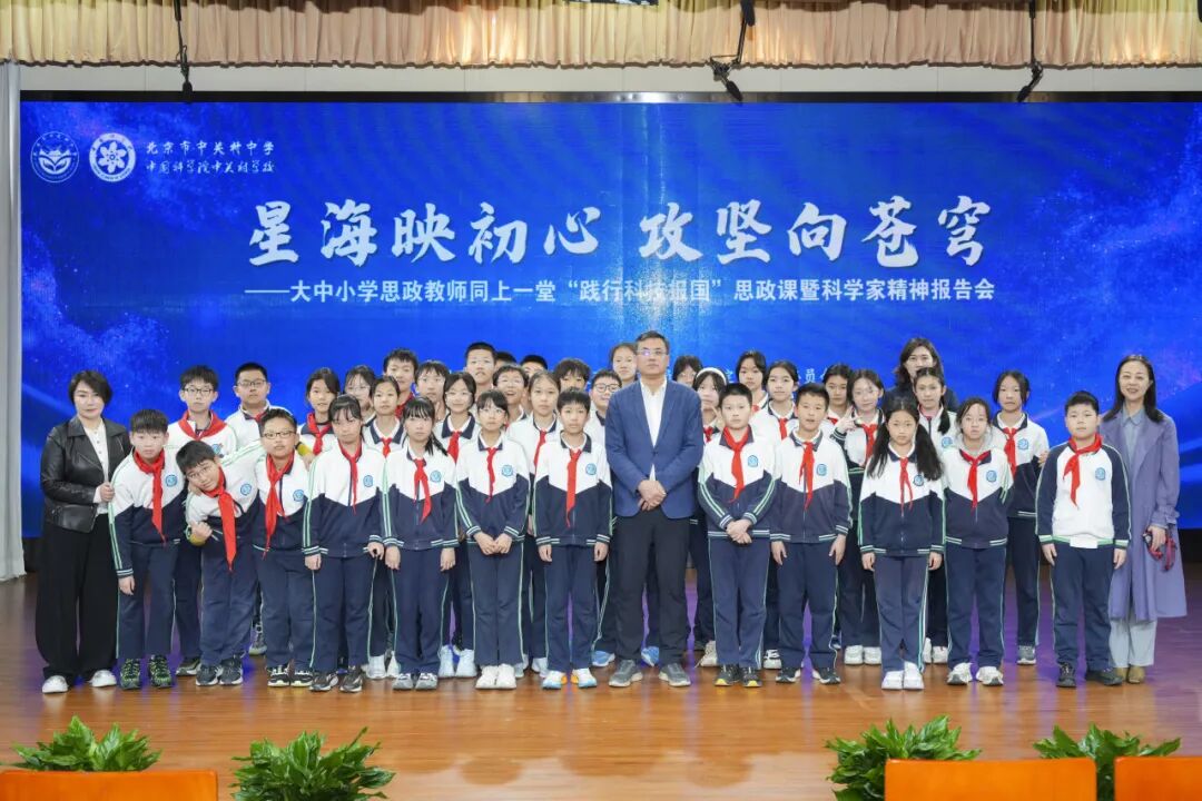 3月26日,“星海映初心 攻坚向苍穹——大中小学思政教师同上一堂‘践行科技报国’思政课暨科学家精神报告会”在中关村中学举行。此次活动由海淀区大中小学思政课一体化共同体第八组——中国科学院大学马克思主义学院、北京市中关村中学、中国科学院附属玉泉小学联合开展,是海淀区深化大中小学思政课一体化建设、推动思政教育与科学教育深度融合的创新实践,旨在传承爱国奉献、勇攀高峰的科学家精神,激励青少年立报国之志、践强国之行。