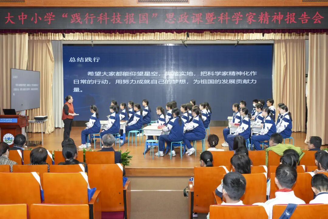 思政课展示环节,三位教师以“践行科技报国”为主题,呈现了一组学段衔接、层层深入、一脉相承的思政大课: