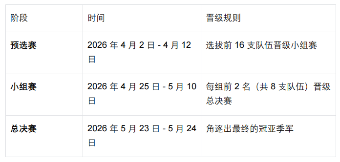 预选赛阶段采用瑞士轮赛制,各参赛队伍通过集中对决,按总胜场数、总净胜球数、相互交手胜负关系
