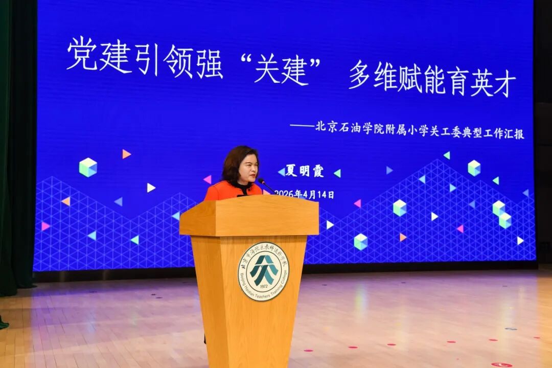 校长夏明霞以《党建引领强“关建”,多维赋能育英才》为题,聚焦“五好”关工委创建,从组织建设、队伍培育、活动开展、作用发挥、阵地保障等方面,分享基层关工委规范化、标准化建设的务实做法与长效创新机制,为全区学校关工委夯实基础、规范运行提供了可复制、可推广的经验。