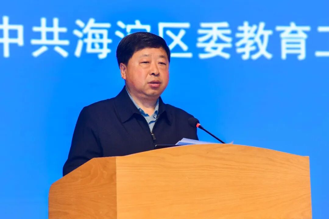 海淀区委教育工委书记杜荣贞发表讲话,他强调,要始终坚持党建引领,把关工委工作纳入教育系统党建工作和教育发展整体布局,牢牢把握正确政治方向,强化政治铸魂、建强银发队伍、统筹协同联动、创新工作品牌,以党建带“关建”,推动关心下一代工作与教育教学、德育工作深度融合,切实扛起立德树人政治责任,构建全域协同育人新格局。