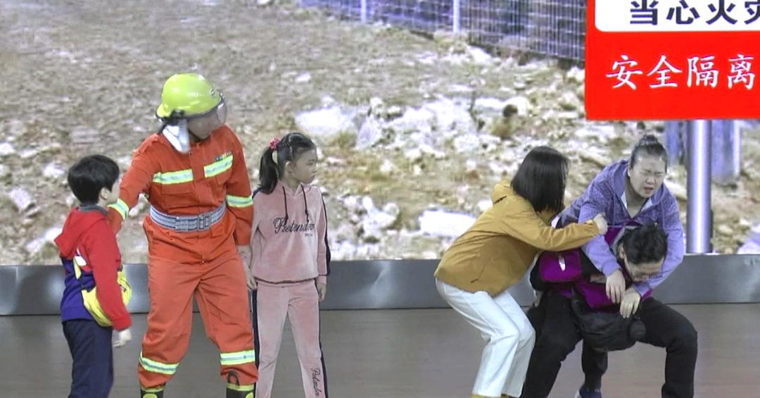 △ 大家齐心协力,在消防员的指挥下成功脱险