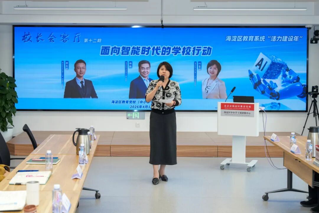 她强调,“校长会客厅”作为海淀教育党校搭建的重要交流平台,始终坚持为全区校长、教育干部和专家学者提供安全、自由、真实的交流空间,发挥着“思发展、享未来、汇众智”的重要作用。主题聚焦教育改革发展中的重点、难点问题,分享实践细节及其背后思考,破解发展难题,推动形成经验共享、协同发展的学习共同体。她指出,人工智能在教学、教师成长与学校管理中的落地应用,离不开家校社协同发力与学校生态系统建设,希望与会的各位书记校长、主管干部以此次活动为契机,主动拥抱智能时代,积极探索人工智能与教育融合的新路径、新方法,通过校长引领、教师践行、家长参与、专家赋能的多方联动,推动海淀教育创新发展,助力人才培养质量持续提升,以激发活力、担当有为的干部教师队伍开创海淀教育高质量发展新局面。