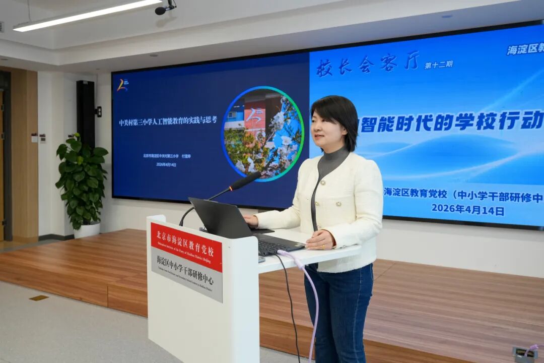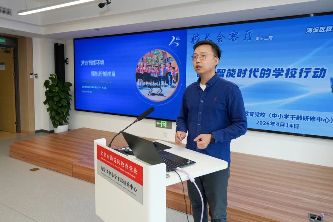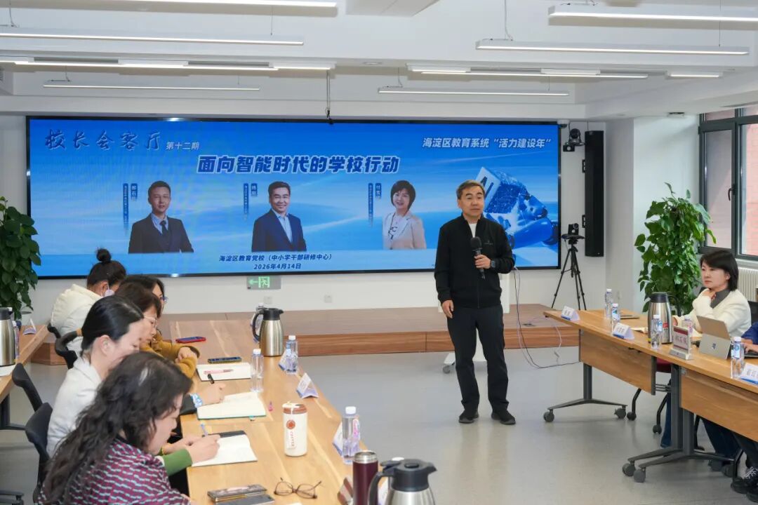 2026年是海淀区“活力建设年”,为激发思想活力、深化创新思维,深入研究思考教育数字化行动举措,推动人工智能与教育教学深度融合,助力海淀教育高质量发展,4月14日,海淀区教育党校(中小学干部研修中心)“校长会客厅”第十二期活动如期举行。本期活动由海淀区中关村第三小学校长杨刚主持,以“面向智能时代的学校行动”为核心主题,聚焦人工智能进入教育领域“如何做对、做实、做好”这一关键命题,汇聚教育同仁共同研讨、凝聚共识、共话发展。