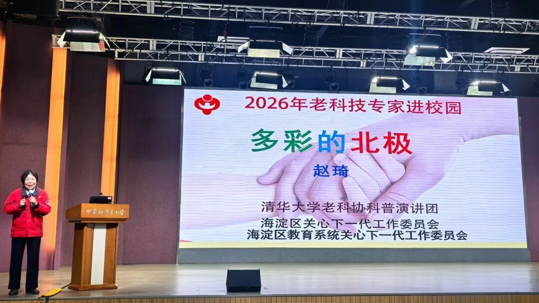 近日,海淀区关工委、区教育系统关工委“思政领航筑梦,五老科普传新”主题系列活动正式启动。首场老科技专家进校园演讲活动在中关村第二小学百旺校区举行,标志着全区范围内以“五老助双减、科普助双百”为抓手的思政与科普融合育人新路径全面展开。本次活动特邀资深北极科考专家赵琦和清华大学老科协科普演讲团专家杨汝荣担任首讲人。