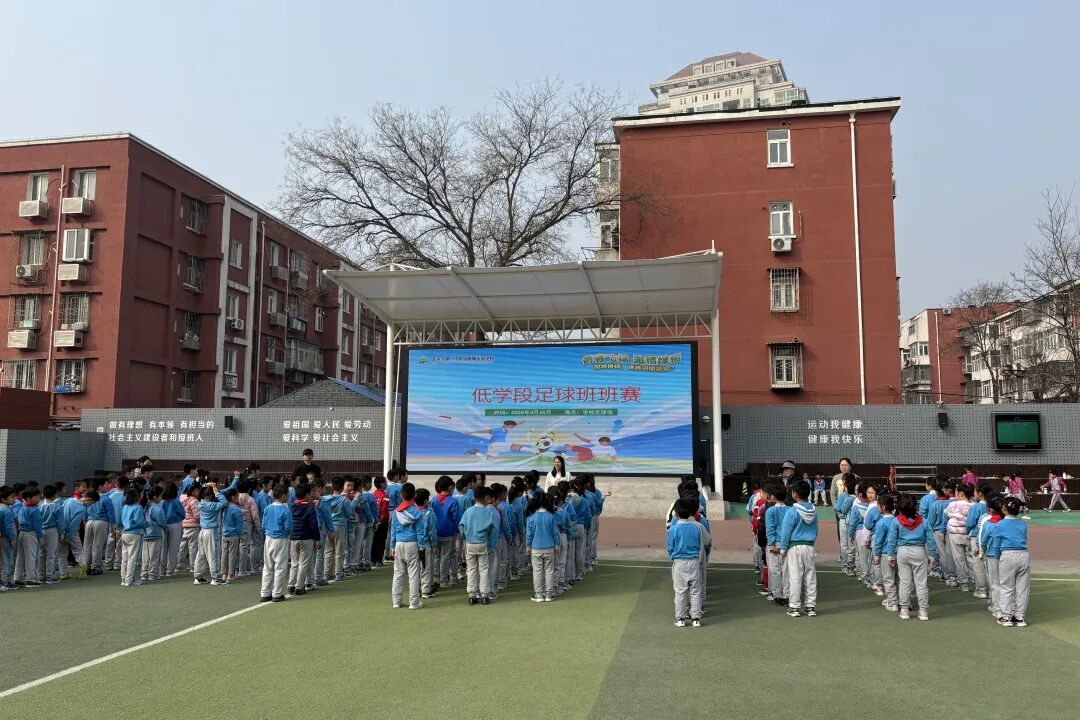 低学段一、二年级开展了校园足球赛。比赛坚持“人人能上场”的原则,让每一名学生在奔跑与协作中体验足球乐趣,达成“出汗、健体、乐动”的锻炼目标。