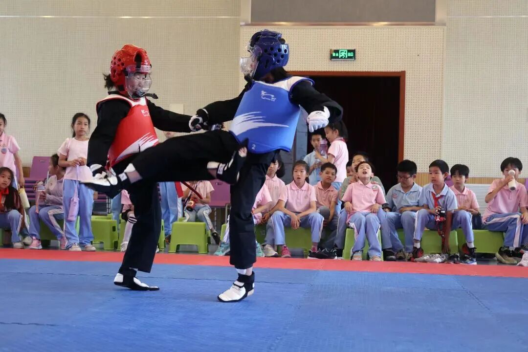学校常态化开展足球、篮球班级联赛,以班级为单位组队竞技,让每位学生都能在奔跑、传球、投篮中增强体魄,培养团队协作精神。同时,作为海淀区跆拳道传统校,学校深耕跆拳道特色教育,从基础品势到实战对抗分层教学,引导学生以礼立身、以武砺志。学校打造“人人参与、天天锻炼”的体育氛围,真正实现以体育智、以体育心,为学生的健康成长筑牢根基。
