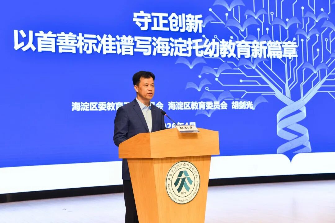 武凯在致辞中表示,海淀区委区政府始终将托幼工作摆在优先位置,系统谋划,整体推进,将托幼工作全面融入区域高质量发展大局,持续强化三大保障,做到组织保障到位、资源布局到位、财政投入到位。武凯强调,未来,海淀区将锚定“大学前”教育标杆区的建设目标,在服务人才高地上展现新作为,在普惠可及上实现新突破,在医育融合上树立新标杆,以首善标准推进托幼一体化高质量发展,举全区之力打造托幼工作的海淀样板。