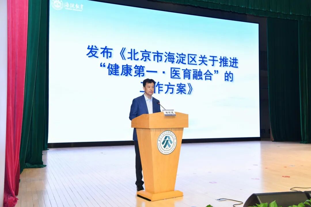 会议举行海淀区“健康第一·医育融合”全域推进启动仪式,正式发布《北京市海淀区关于推进“健康第一·医育融合”的工作方案》。该方案由区教委和区卫健委联合制定,指向婴幼儿的健康成长与全面发展。胡剑光对方案的核心内容,即育健融合·成长基石计划、育膳安康·营养金钥匙计划、育蕴传统·国粹护苗计划、育才培优·专业赋能计划、育心共情·家园同心圆计划、育见未来·数据慧眼计划六大行动计划进行介绍。