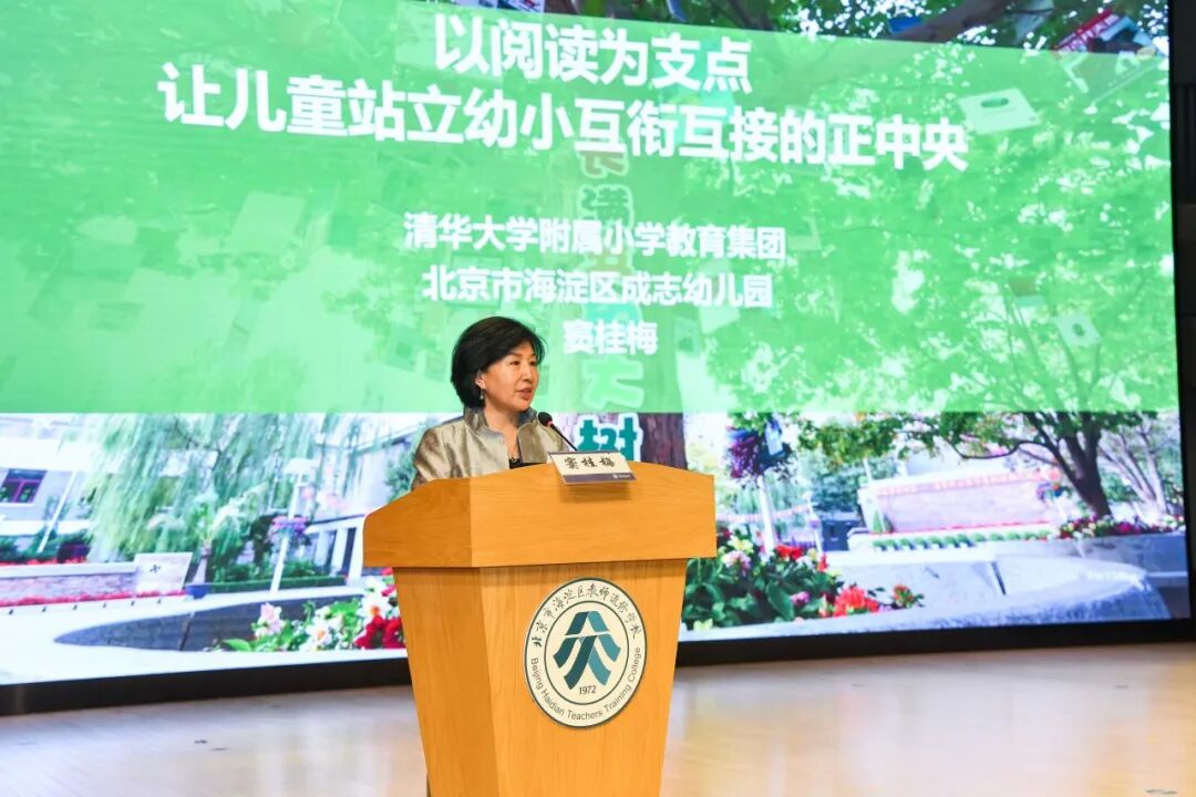 5名园所代表作大会交流发言。北京师范大学实验幼儿园园长夏华颖,北京明天幼稚集团党委书记周轶群,清华大学附属小学校长、成志幼儿园园长窦桂梅,中关村二小科学城北区幼儿园园长丁伟,北京市海淀区恩济里体大幼儿园园长李晨,聚焦机制创新、健康守护、专业赋能、衔接贯通四大战略支点,分别从托幼一体化、集团化办园、幼小衔接、医育融合、数智赋能教师发展五个维度分享思考、路径、成果和经验。