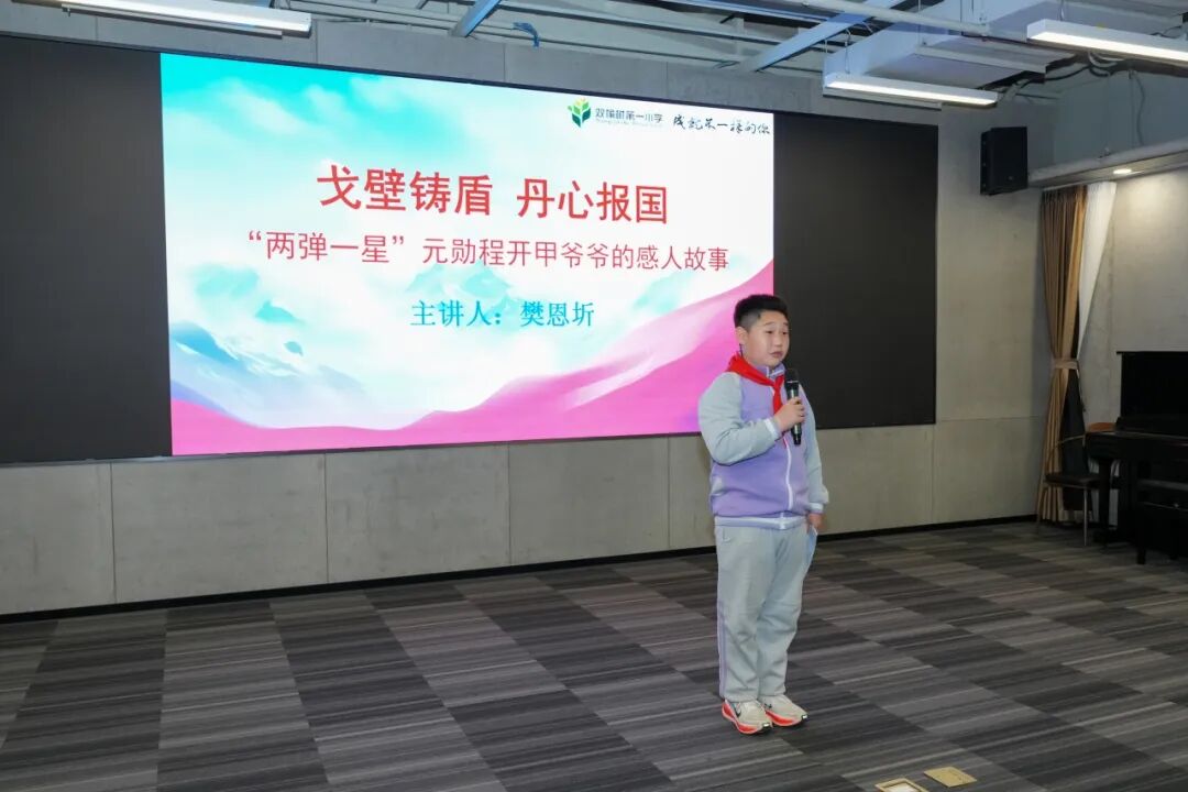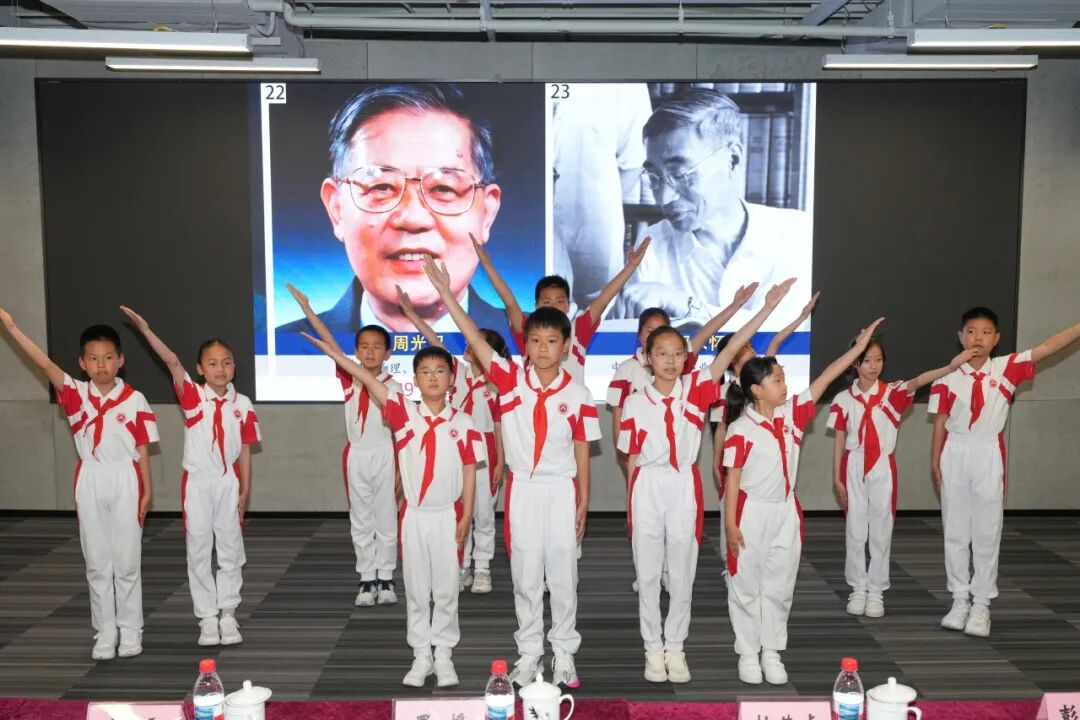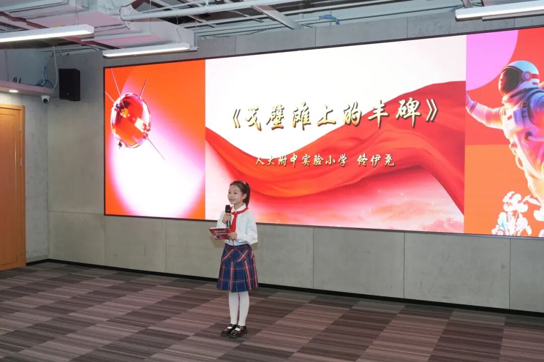 海淀区中关村学区少先队员代表登场,用稚嫩、坚定的声音,讲述了老一辈科学家为国家“两弹一星”事业奉献青春,乃至献出生命的感人事迹。他们用真挚的表达,将心中的科学梦想与爱国情怀,传递给现场每一个人。