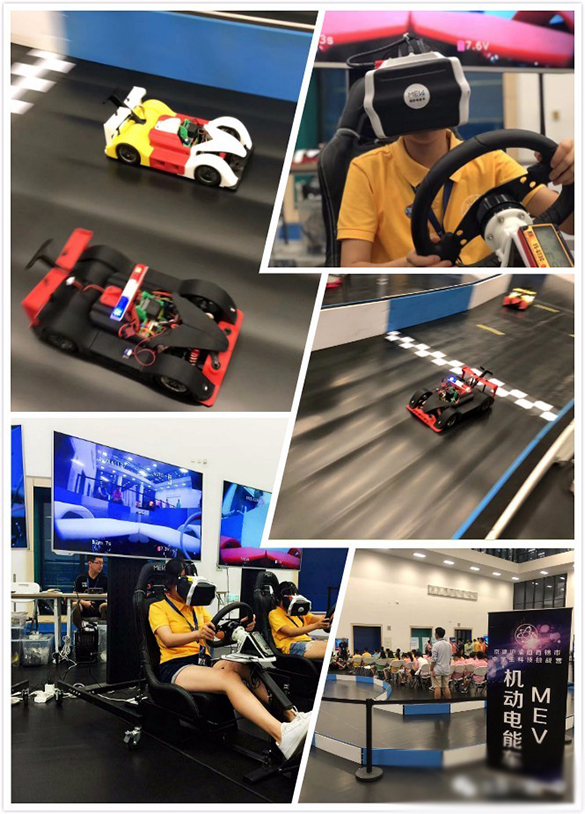 3日晚上的科技艺术工作坊中,5名学生们参加了MEV机动电能车项目,利用VR技术体验驾驶真实赛车在赛场上飞驰。