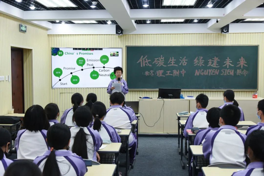 2022年3月31日上午,春意盎然、生机勃勃,正值北京最好的季节,北京理工附中东校区与越南NGUYEN SIEU SCHOOL就中越两国的绿色环保开启了一场以“低碳生活 绿建未来”为主题的线上交流活动。