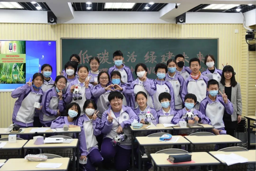 持续了一个半小时的线上交流活动不知不觉就结束了。通过交流,同学们不但对两国的低碳环保有了更深刻的认识,同时拉近了两校间的距离,加深了同学们之间的了解。活动在热烈的气氛中结束,师生们意犹未尽,依依不舍,期待着再一次的相遇。