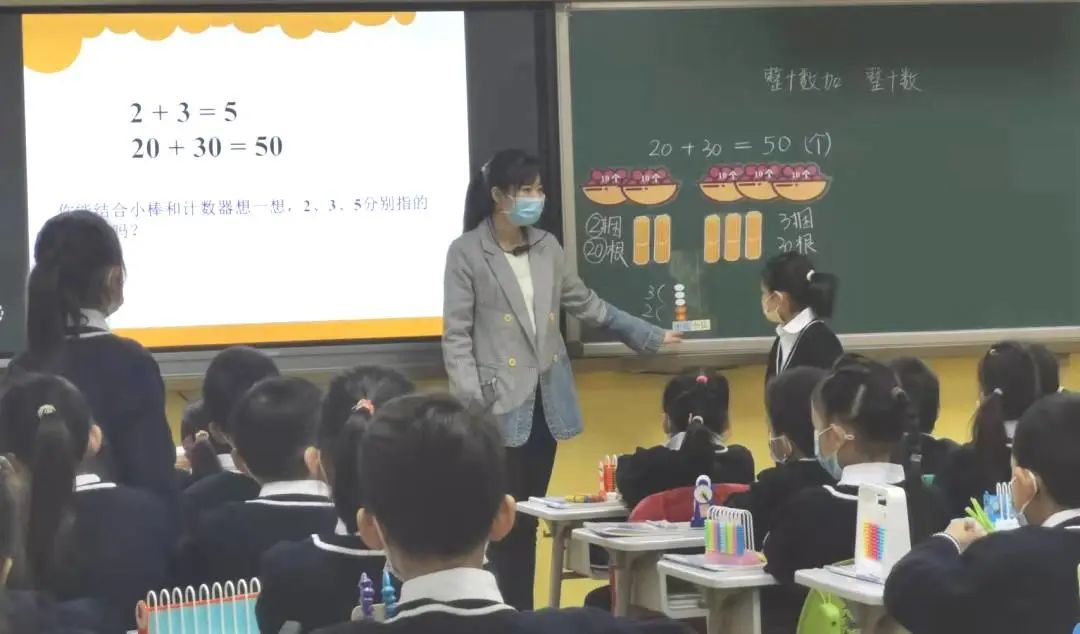 邵钰彤老师执教的一年级《整十数加减整十数》,在“小兔请客”的情境中,让学生发现信息、提出问题,加深对加减法意义的理解。在探索计算方法的过程中,同学们充分借助小棒和计数器,找到了算理,并在总结提升中,提炼出算法。