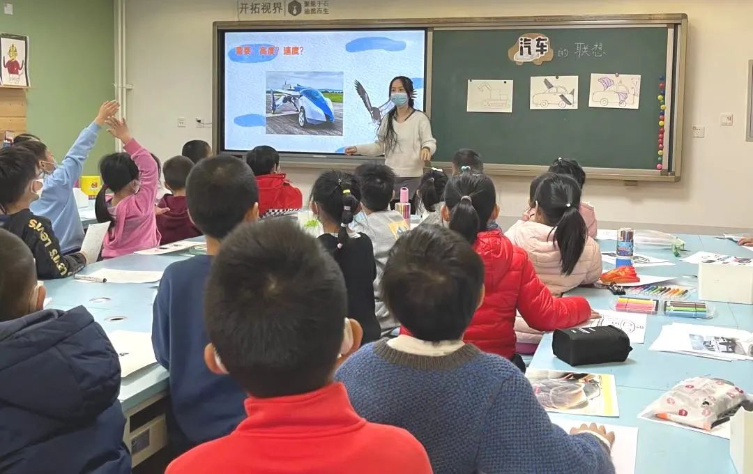 叶鑫老师为大家展示了《汽车的联想》,本课是一年级下册“造型表现”领域的课程。叶老师展示了一条汽车拥挤的马路图片,引导学生思考,抛出从解决汽车拥堵问题,引导学生从汽车的外形上根据需求添加合适的功能,然后为满足使用者的需求,引导学生从汽车的内部添加功能。本课叶鑫老师一直充当着一位“思维导师”的角色,整堂课老师通过循序渐进的问题,一步步打开学生的思维及想象力。