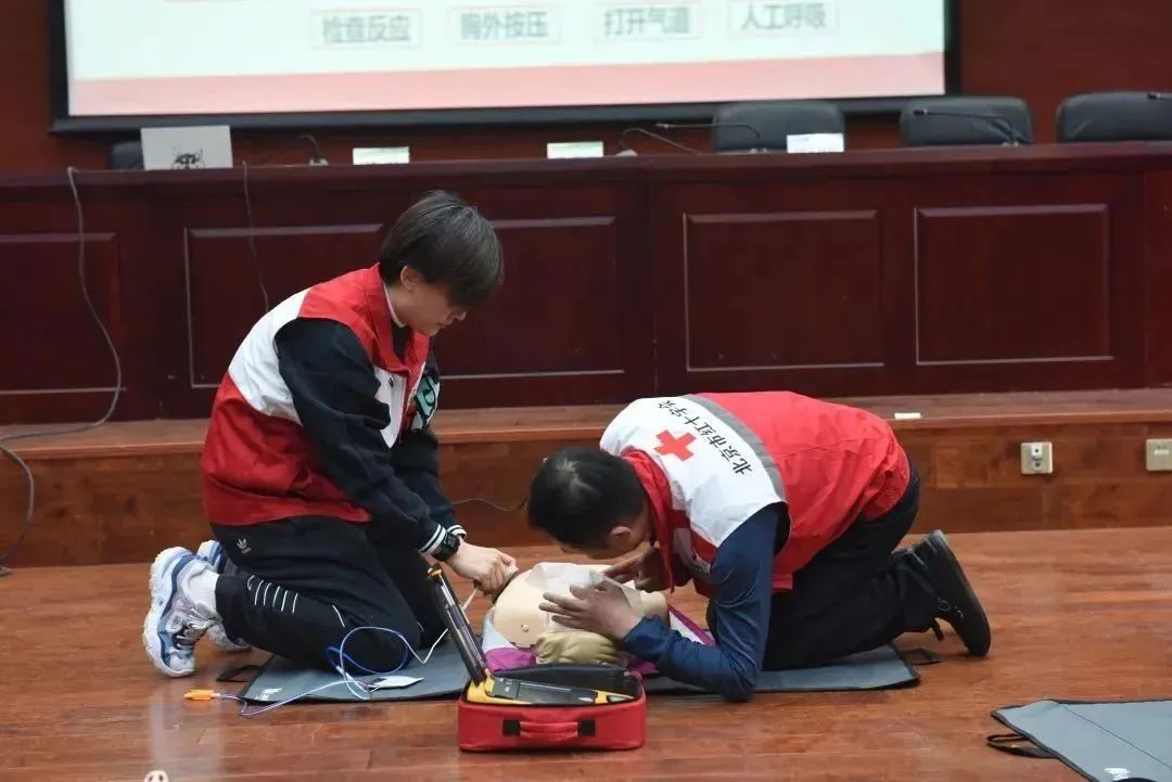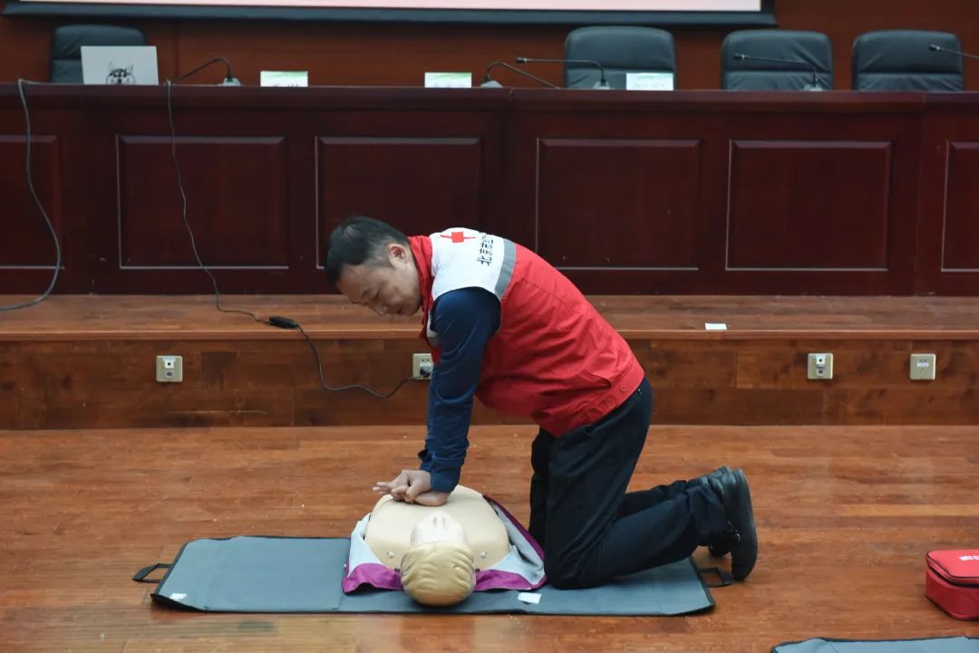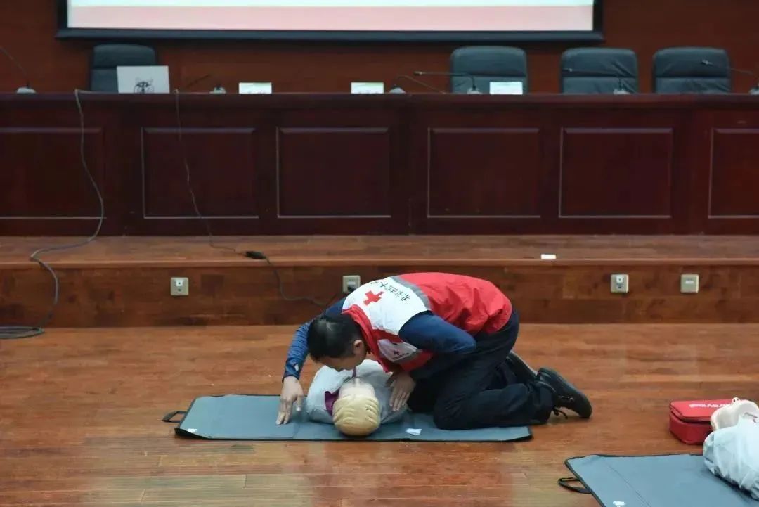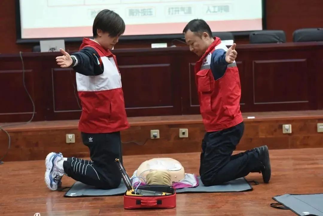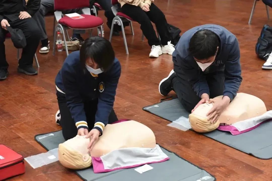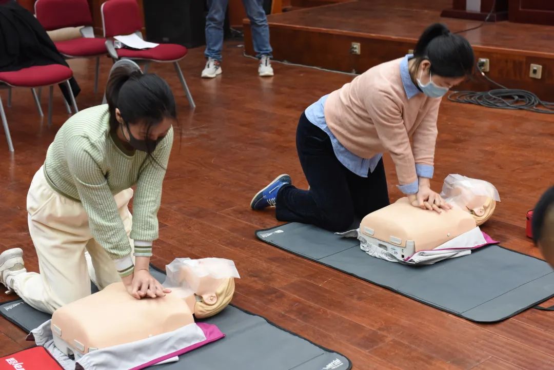 两位老师首先从心肺复苏概述、心肺复苏实操和AED的使用三个方面详细讲解了红十字应急救护的理论知识及AED设备的并结合实际事例视频,强调了应急救护“黄金四分钟”的重要性。随后老师们用模拟人道具现场演示了心肺复苏(CPR)技术的要点和操作规范,以及自动体外除颤器(AED)的具体操作步骤。