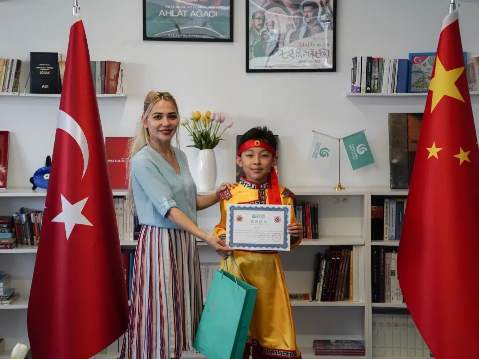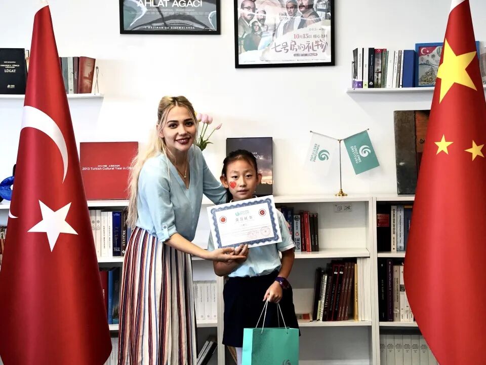 蒋苏博士亲自为同学们颁发了荣誉证书,以表彰他们作为人文艺术小使者为中土民间外交所做出的努力。蒋苏博士同时也为同学们送上土耳其的特色礼物,并亲切地和孩子们一一合影留念。